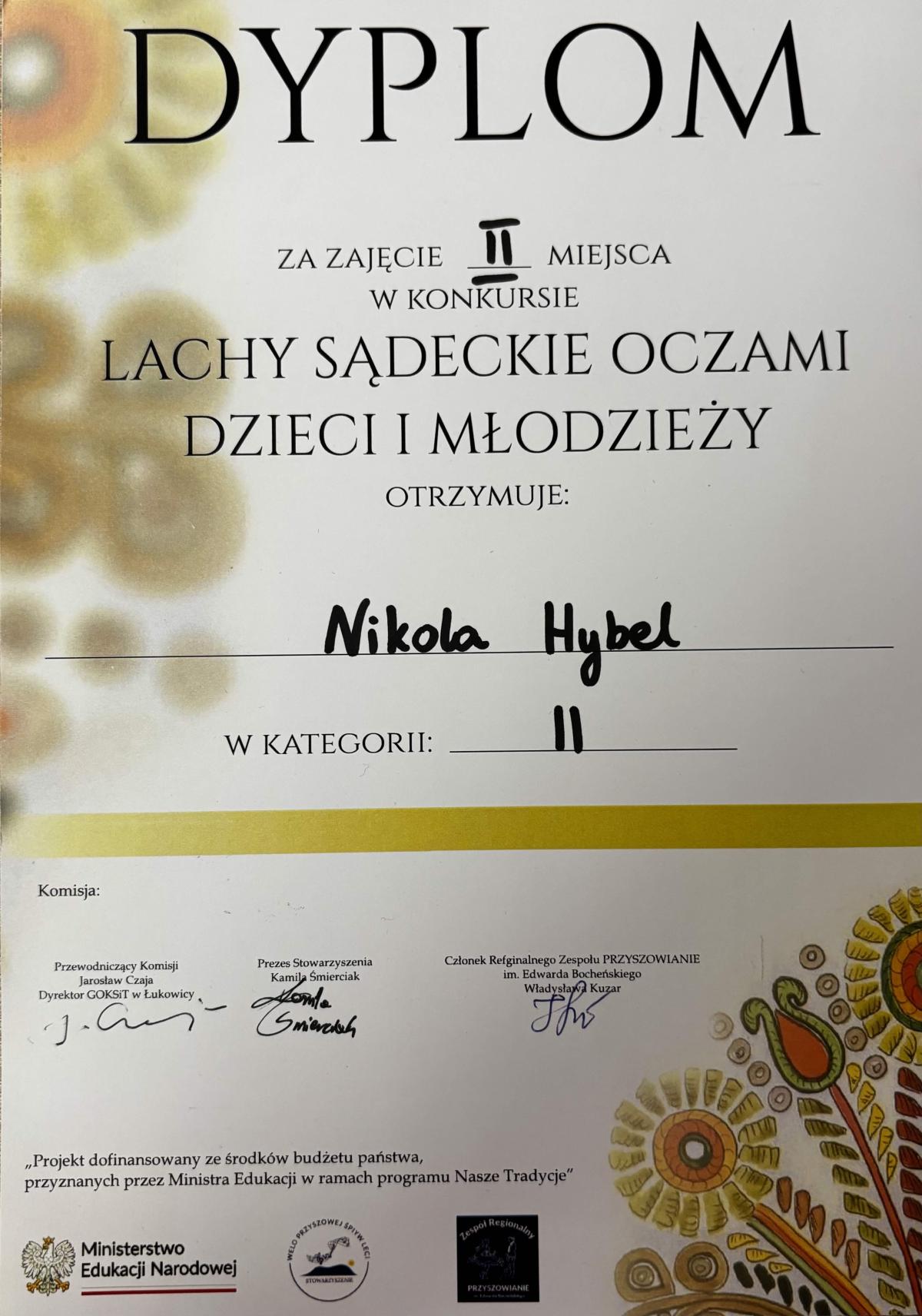 W sobotę 15.11.2025 r. w Świetlicy Wiejskiej w Przyszowej odbyło się podsumowanie warsztatów taneczno-wokalnych, warsztatów muzykowania ludowego i konkursu plastycznego „Lachy Sądeckie oczami dzieci i młodzieży” organizowanego przez Stowarzyszenie „Welo Przyszowej śpiyw leci” dofinansowanego ze środków budżetu Państwa, przyznanych przez Ministra Edukacji w ramach programu NASZE TRADYCJE. Uczniowie naszej szkoły wzięli udział zarówno w warsztatach jak i w konkursie plastycznym, osiągając wysokie miejsca.