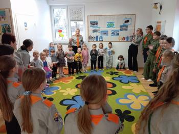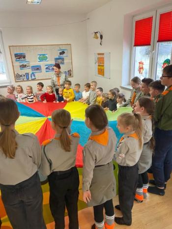 Wizyta harcerzy w Niepublicznym Przedszkolu Integracyjnym Chatka Małego Skrzatka w Przyszowej 9.02.2026