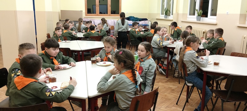 Spotkanie zakończyło się rozdaniem, przez druhnę Jolę, sprawności Dnia Myśli Braterskiej, którą zuchy uzyskali w trakcie zbiórki oraz pamiątkowych dyplomów. Następnie wszyscy udali się na jadalnię, by skosztować smacznego poczęstunku.